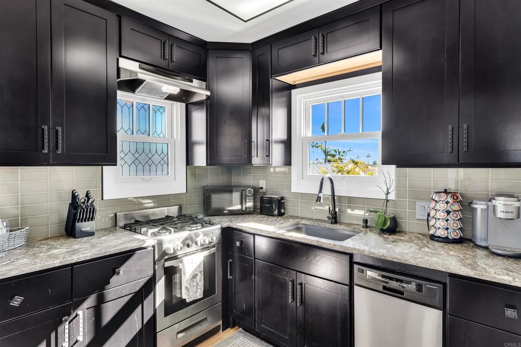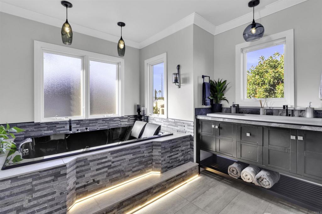 This elegant 2 on 1 property, with a profitable ADU, has been transformed into a North Park masterpiece. The eye for impeccable craftsmanship and stunning upgrades comes with full permitting and city approvals...done by the seller who had no intention to ever sell. There's a cozy and private ADU above the garage with approx $30K of verifiable annual income. Main house is 3-bed/2.5 bath, with an award-winning kitchen boasting spectacular marble countertops, side-by-side Bosch French door ovens, Viking 6-burner gas cooktop, Fisher Paykel dual drawer dishwasher, and Jennair built-in refrigerator. All bathrooms are new, with the Primary featuring a steam shower, heated floors, towel rack and large jetted tub. Every part of this classic house was updated, from windows & doors, to all new electrical and plumbing infrastructure. Upgrades include owned solar, level 2 car charger, wifi outlets throughout, Marvin dual pane windows, water softener system, French doors, Graber power window treatments, new roof on main house and trex decking on outdoor patios & decks. A complete list is available on the MLS listing. The ADU has a separate bedroom, full kitchen and sitting room, and conveys fully furnished & stocked. Walk to everything delicious and fun in North Park, including top rated Alexander's on 30th and nouveau ramen & noodles at Underbelly. This amazing property is a must see!